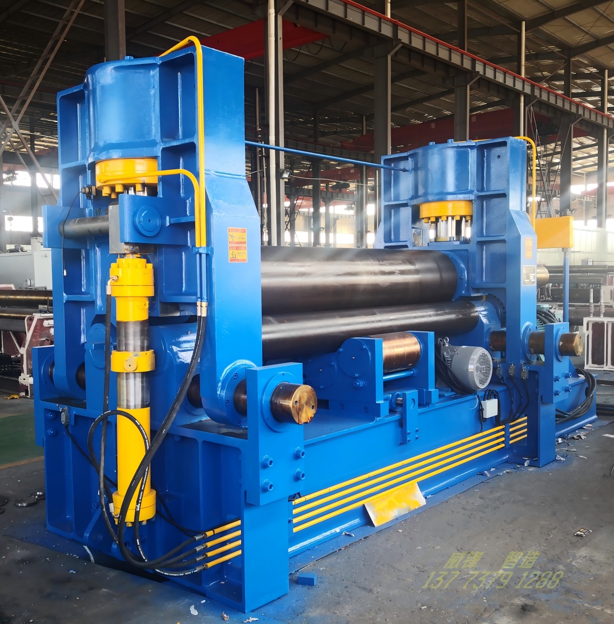 上辊万能卷板机性能与特点: 1、高精度的端部预弯 自由地设定直边长度,上辊直接加压预弯,能够完成高精度的端部预弯。 2、NC控制,高的生产效率 卷制制品工艺参数NC化,操作简单,效率大幅度提高。 3、制品精度超群 上辊呈鼓形状,下辊的下部有托辊配合调节,连续弯曲,从薄板到厚板这一广泛