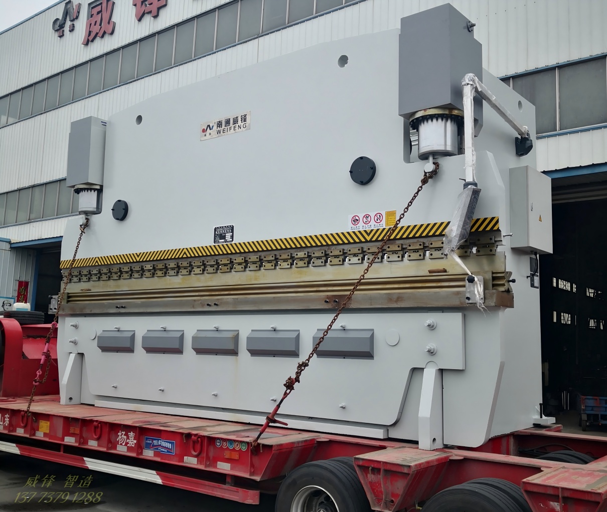 性能与特点: 1、整机钢板焊接结构,采用振动时效消除内应力,强度高、刚性好; 2、液压双油缸上传动,机械挡块,扭轴同步,运行平稳可靠,精度高; 3、后挡料距离及滑块行程采用电动调节及手动微调方式,并配有数字显示装置,使用方便快捷; 4、上模配有挠度补偿装置,250吨和长度4000mm 以上机床可采用下挠度补偿机构。
